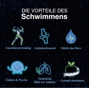 Badebekleidung, Handtuch, Badekappe und Schwimmbrille – mehr brauchst du nicht. Wenn du unsicher bist, helfe ich dir gern weiter.